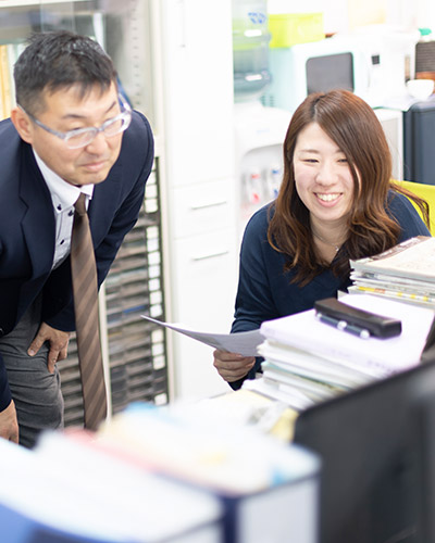 また係長という役職者として、後進の指導も仕事に含まれる。