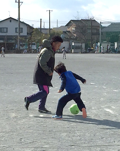 「息子は自ら興味を示してボールを蹴り始めました。現在は朝から晩までサッカー漬けの毎日で、本人が夢中になって取組んでいます。親ばかかもしれませんが、息子がサッカーというスポーツで個性を発揮していってくれればいいな、という淡い期待はありますね。しかしながら身体を鍛え、チームスポーツを体験することで人と調和することを学び、多くの友人に恵まれる人間になってもらえることを、いちばん期待しています。ドリブルばかりしてパスをあまり出さなかった自分が言うのも何ですが、、、」