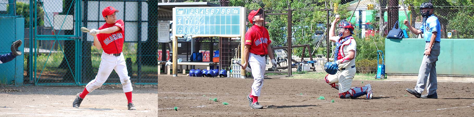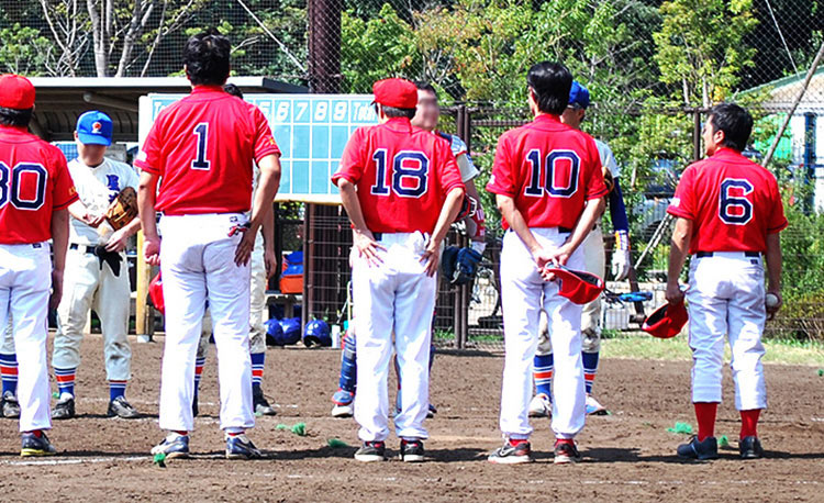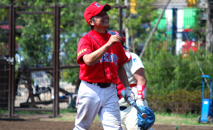 毎年夏に仕事関係先の企業が参加して開催される野球大会「京王杯」で優勝し、目に焼き付くような赤が印象的な現在のユニフォームを会社にあつらえてもらった。