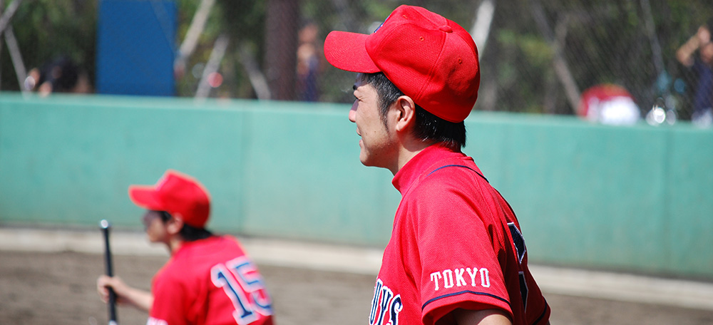 今日この場所を訪れたのは、職場の同僚で結成された赤いユニフォームのチーム、その名も「歌舞伎町ゴールデンガイズ」で監督兼2番・セカンドを務める大島拓矢に話を聞くためだ。