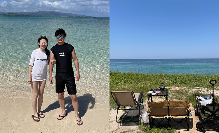 陸ではキャンプ、ライフガード時代にトライアスロン競技を通じて出会ったロードバイク、海では佐賀や長崎まで車で足を伸ばしSUP(スタンドアップパドルとよばれる、サーフィン用よりも大きなボードに立って専用のパドルで漕ぎ進むスポーツ)を楽しむなど、アクティブ一辺倒だ。