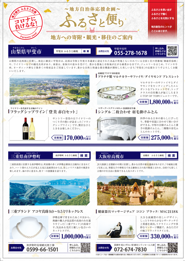 東京都中央区、港区、江東区内のタワーマンション約35,000世帯にふるさと納税利用ピークに合わせて、3ヶ月連続で月1回、同じものを配布します。